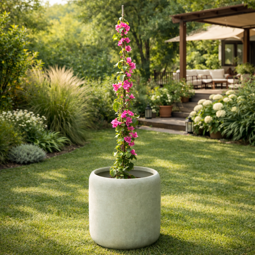 Ideal para plantas ornamentales y composiciones naturales en terrazas, jardines y espacios contemporáneos.