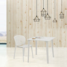 Mesa cuadrada para uso diario en exterior. Superficie amplia, estructura firme y líneas sobrias.