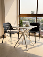 Ideal para 2 personas o aperitivos, perfecta para terrazas, cafés y espacios sociales.
