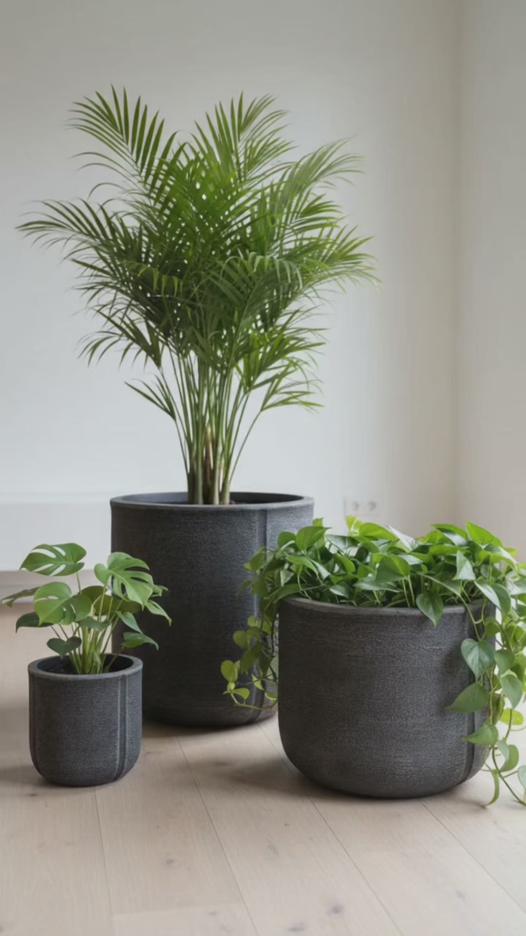 Maceta en color grafito con diseño elegante y acabado mate sofisticado.