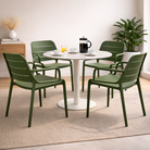 Sillas resistentes y modernas, ideales para terrazas, jardines y espacios exteriores. Su color Army Green aporta un look contemporáneo, mientras que su material de polipropileno con fibra de vidrio garantiza alta durabilidad al sol, la lluvia y la humedad. Ligeras, apilables y perfectas para uso diario en ambientes sociales.