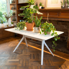 Mesa rectangular de gran tamaño, ideal para interior o exterior.