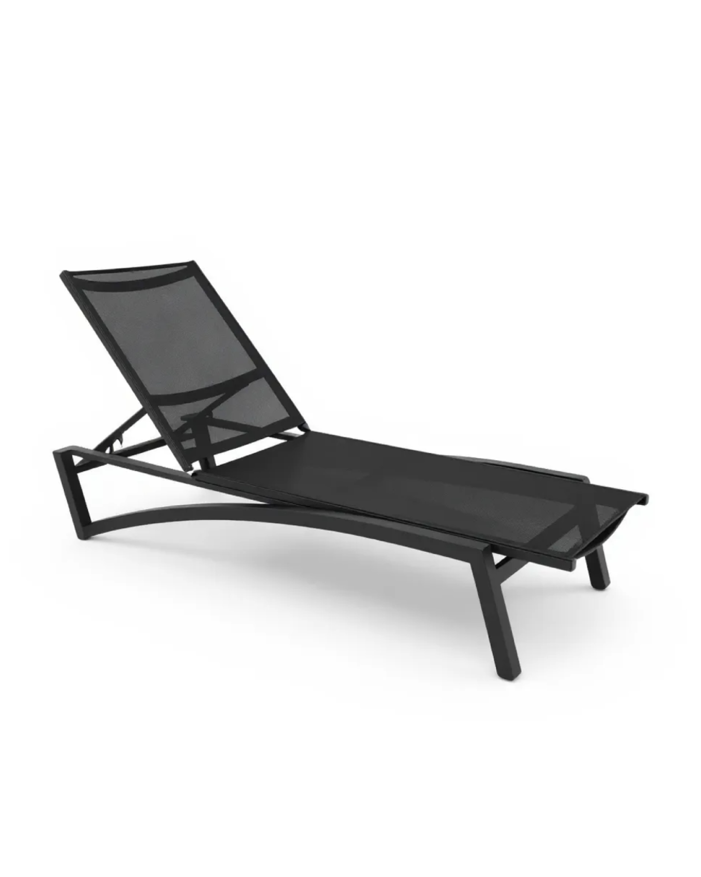 Camastro de gran tamaño en color negro, ideal para descanso prolongado en exteriores.