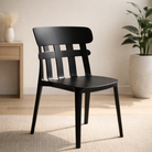 Silla de diseño moderno en color negro, ligera y funcional.