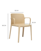 Silla de diseño contemporáneo en tono beige, ideal para interiores y exteriores.