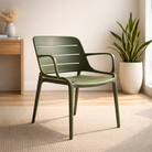 Silla resistente y moderna, ideal para terrazas, jardines y espacios exteriores. Su color Army Green aporta un look contemporáneo, mientras que su material de polipropileno con fibra de vidrio garantiza alta durabilidad al sol, la lluvia y la humedad. Ligera, apilable y perfecta para uso diario en ambientes sociales.